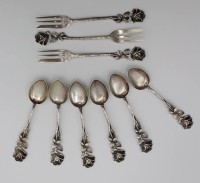 10x Silber Kaffeelöffel, Griffende mit Wildvögel, ungedeutete Punzen in Laffe, L-12,5 cm, ca. 160 gr.