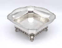 gr. Art Deko Schale, plated, auf drei Kugelfüsschen, H-6 cm, 26 cm, Hammerschlagdekor, guter Zustand