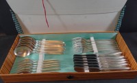 Obstbesteck in Kasten, 800er Silbergriffe, um 1900,für 6 Personen, ca. L-15cm