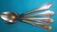 3 Teelöffel, 1 Zuckerschaufel, Silber 800-, zusammen 78 gr.