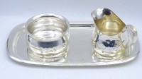 Tablett mit Milch und Zucker, Alpaka, Gebr. Deyle, ca. H-8cm, Tablett 24,3 x 14,8cm.
