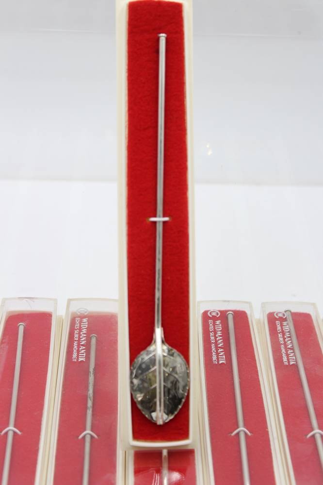 10x Silber-835- Cocktail-Löffel, Chr. Widman, neuwertig in OVP, Handarbeit, L-18 cm, ca. 106 gr