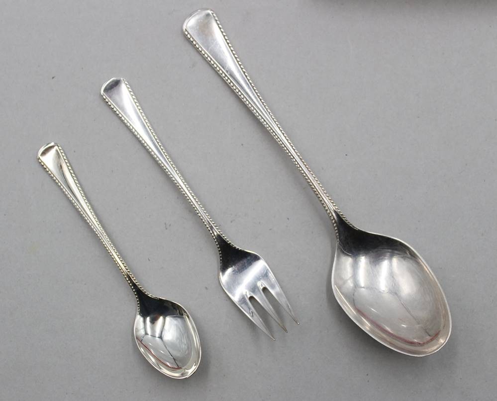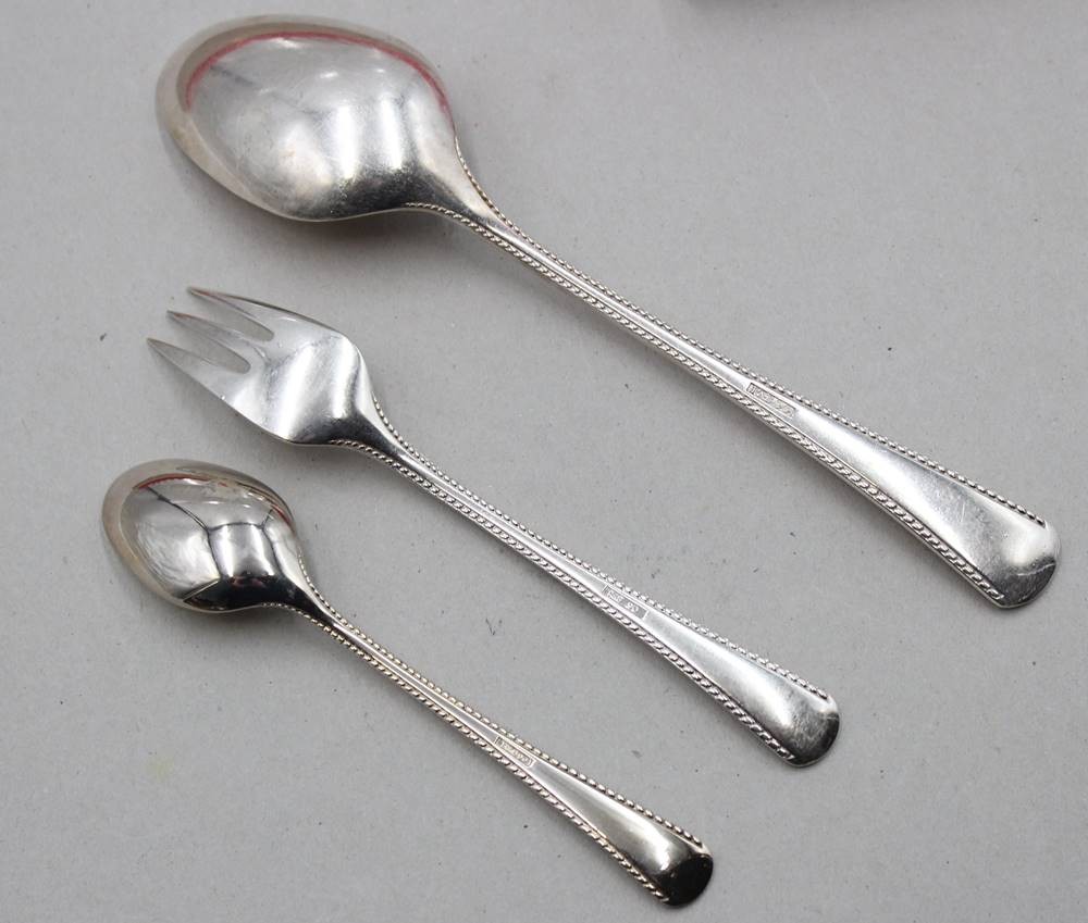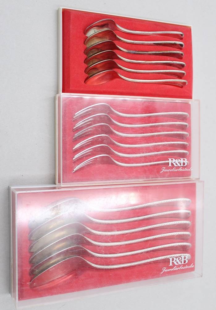 12 Besteckteile, Robbe & Berking, Königskordel, 90er Auflage, je 6 Speiselöffel, Kuchengabeln und Kaffeelöffel [1]