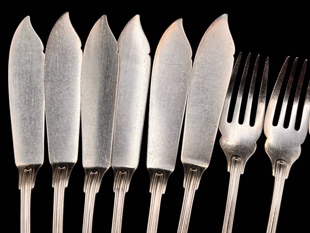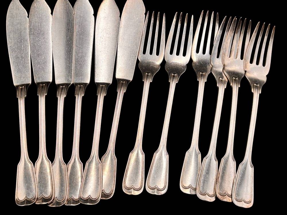 12 tg. Fischbesteck, 90-er Auflage, Augsburger Faden, L-24 cm [1]