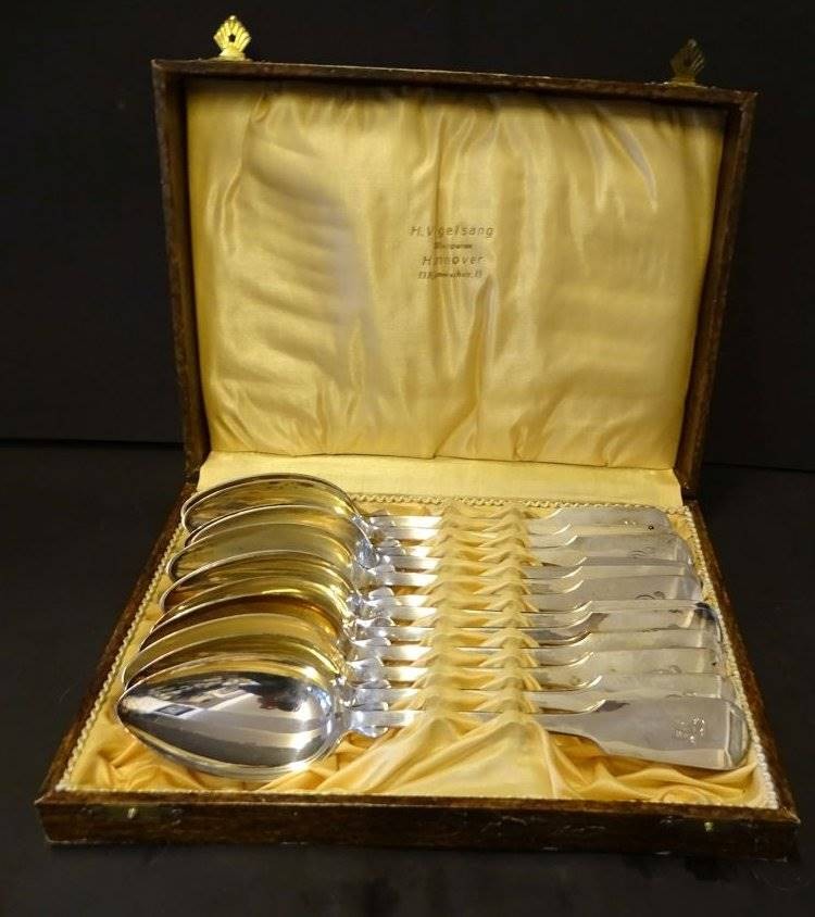 12x gr. Silberlöffel-800-, Ziermonogramm DL, Spatenform, sehr gut erhalten, L-22 cm, zus. 780 gr.