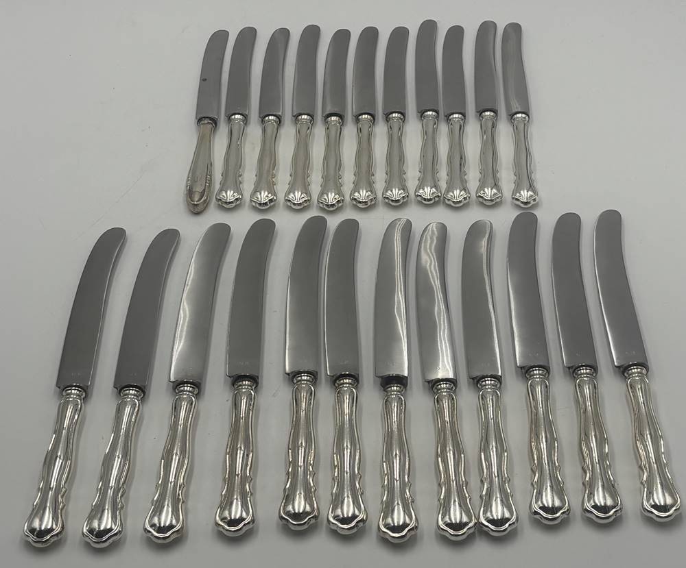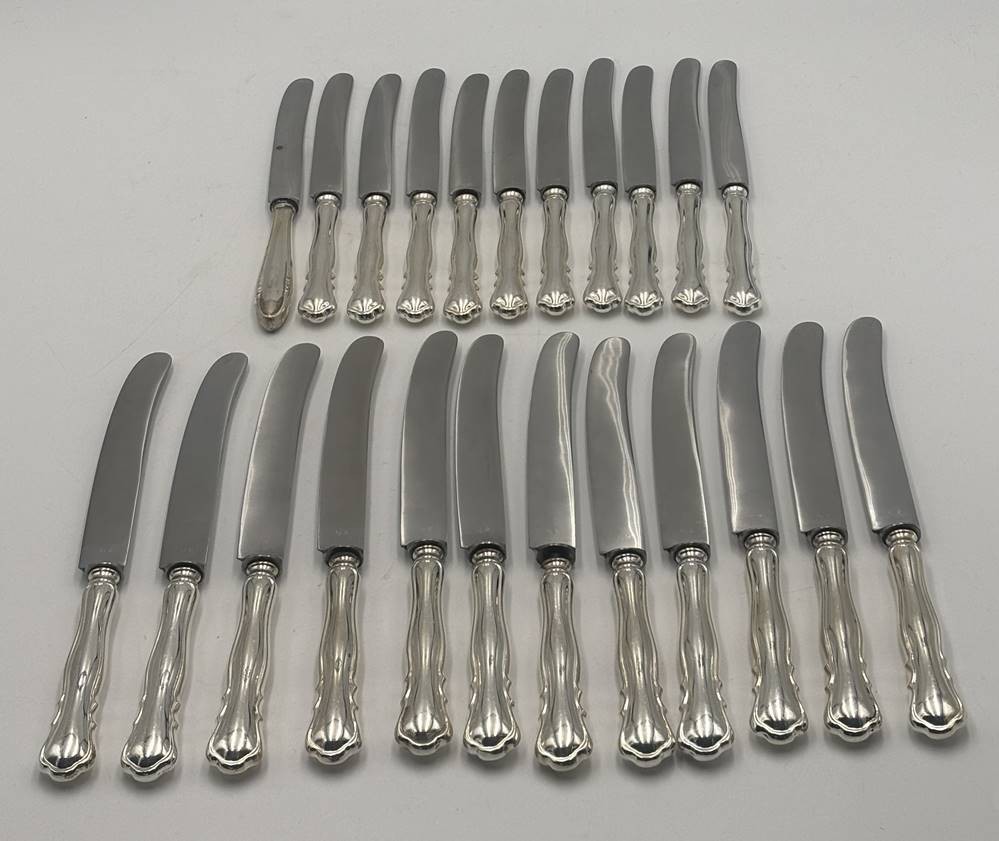 12x grosse, 11 kleine Messer mit Silbergriffen (1x nicht passendes Dekor), 1,58 kg, Wilkens, L-22 und 26 cm