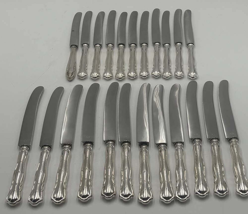 12x grosse, 11 kleine Messer mit Silbergriffen (1x nicht passendes Dekor), 1,58 kg, Wilkens, L-22 und 26 cm [1]