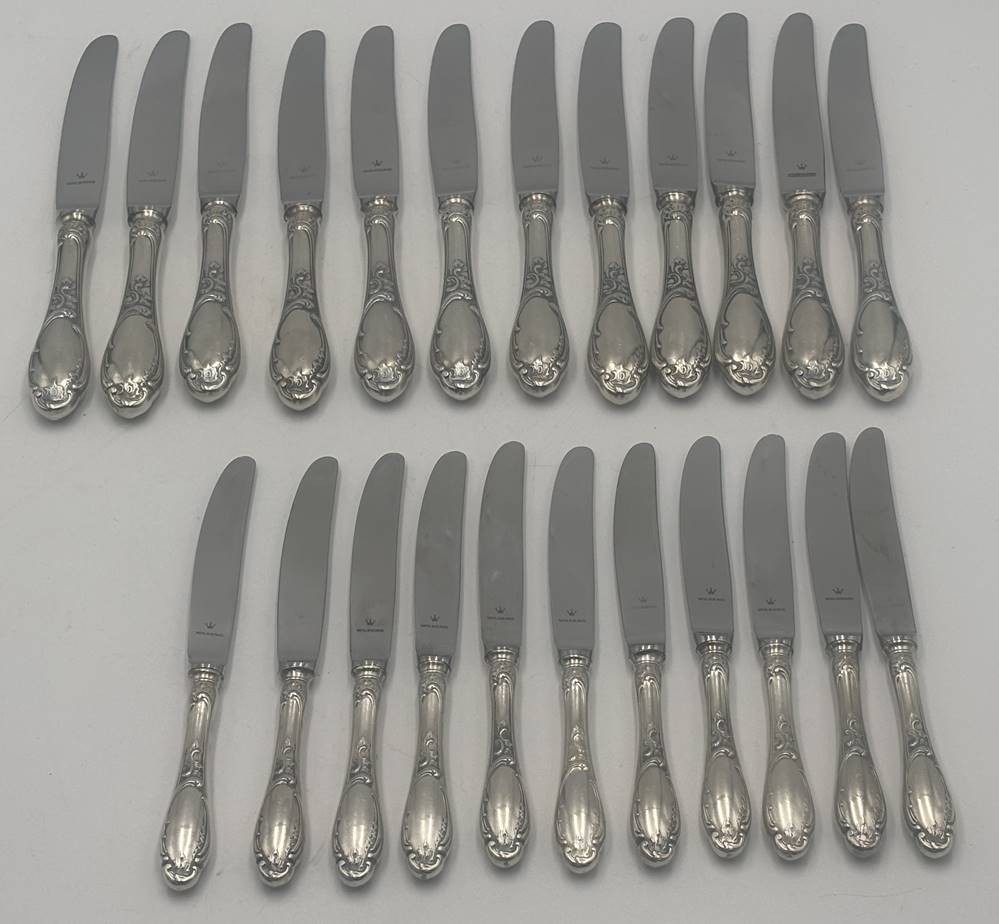 12x grosse, 11x kleine Messer mit Silbergriff _800- Wilkens, guter Zustand, L-17,5 und 21 cm, zusammen 1,64 kg [1]