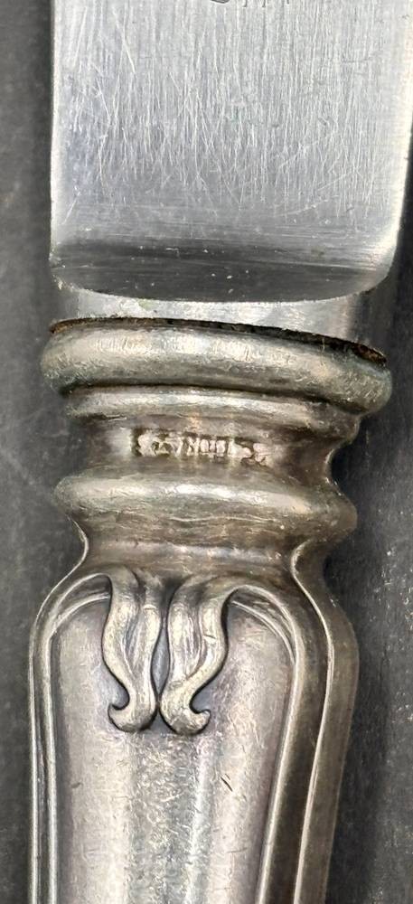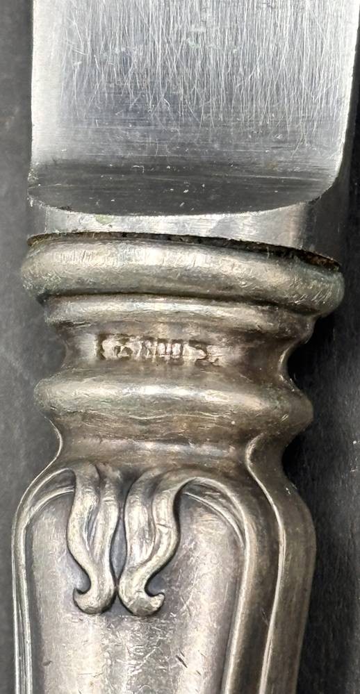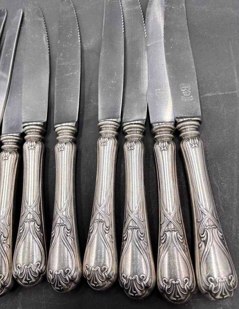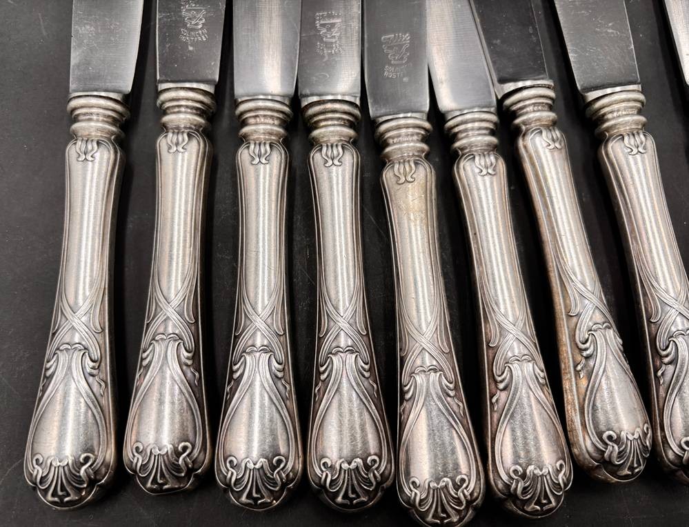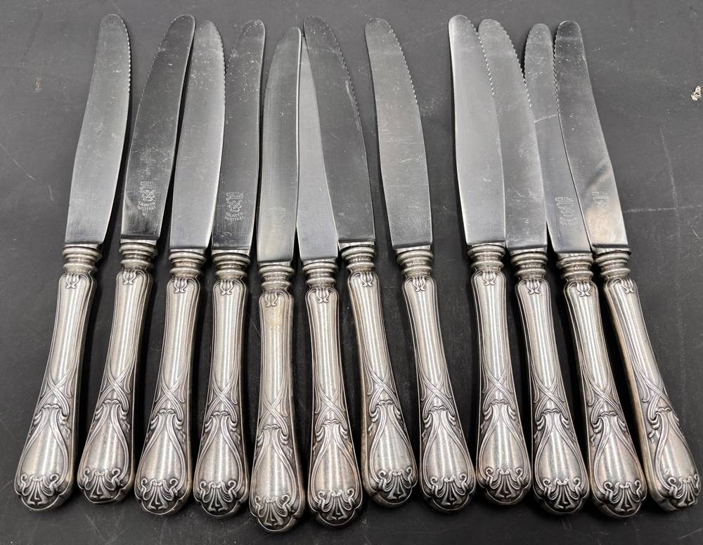 12x grosse Jugendstil-Messer, Silbergriffe-800- Wilkens-Bremen, Entwurf?, L-25 cm, zus. ca. 920 gr., guter Zustand [1]