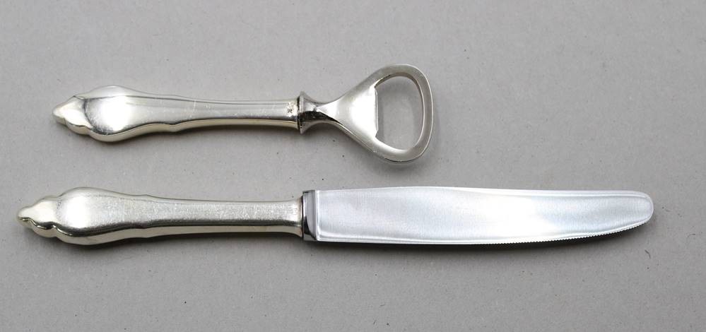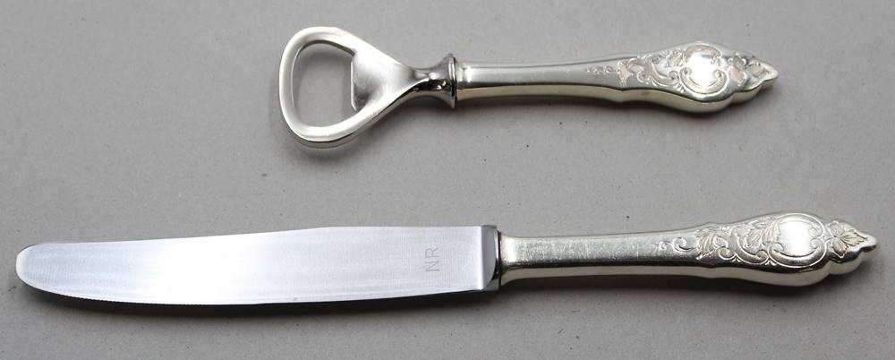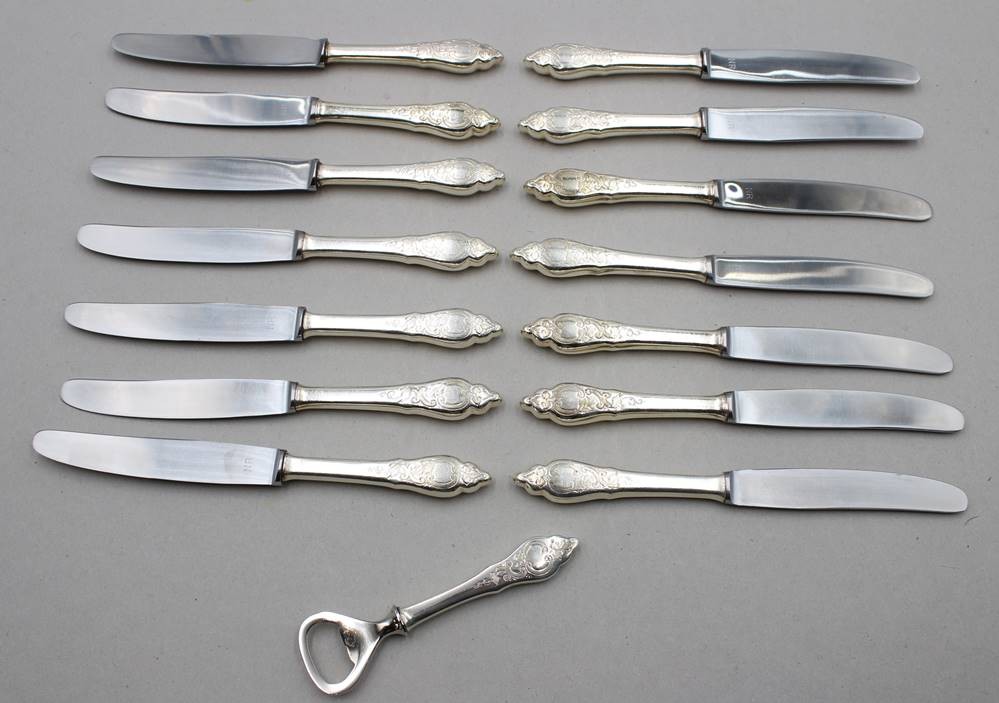 14x Speisemesser und ein Flaschenöffner, Friesenmuster, 90er Auflage, ca. L-21cm [1]