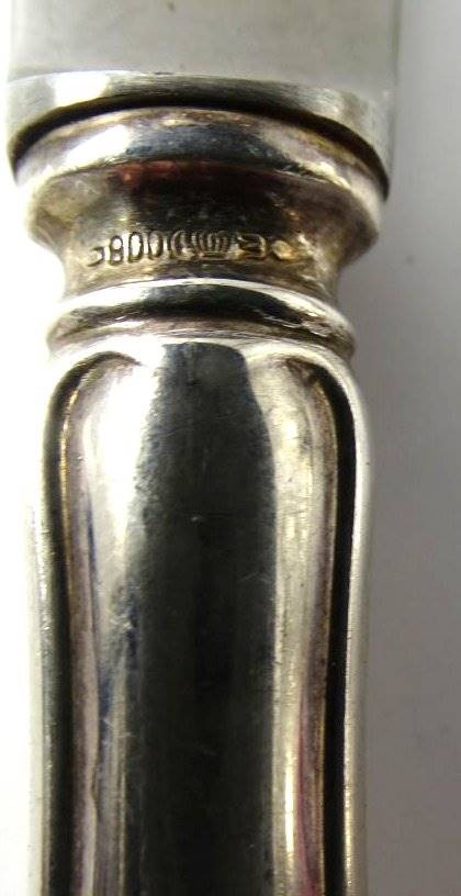 15 Messer, davon 14x Menumesser L-20 cm, und ein grosses mit 25 cm, Silber-800-, Wilkens [1]