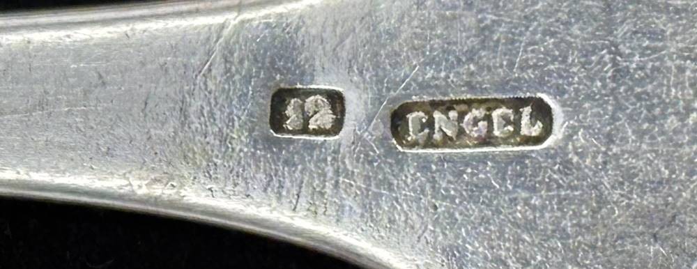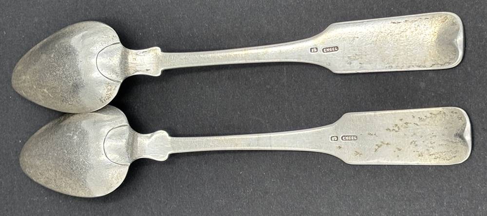 2 Biedermeier Silber-Kaffeelöffel, 12 lötig, Meister Engel, L-15 cm, beide 15 gr. [1]