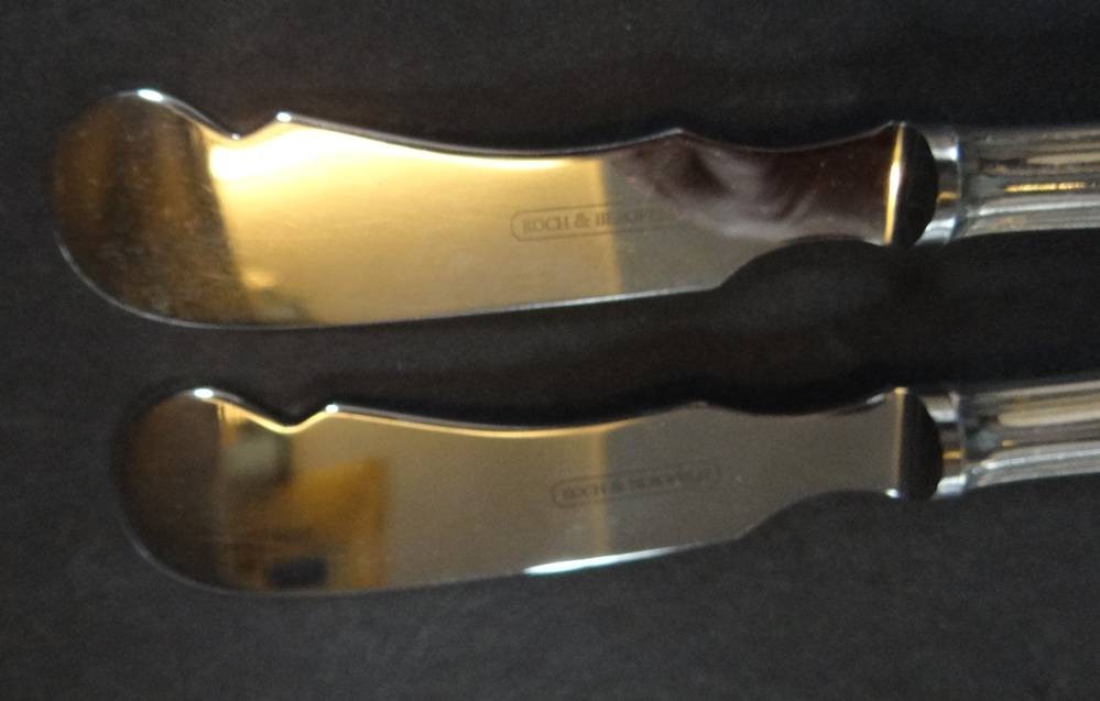 2 Buttermesser mit Silbergriffen -800-, Koch&Bergfeld, L-19,5 cm, zus. 150 gr., neuwertig [1]
