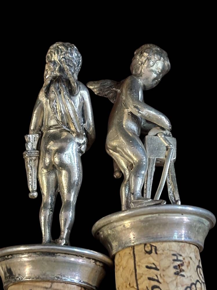 2 Korkenhalter, Putti, versilbert, 1x fehlt ein Flügel, H-ca. 6 cm