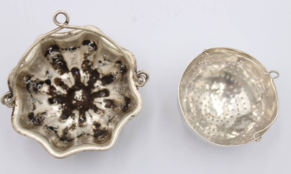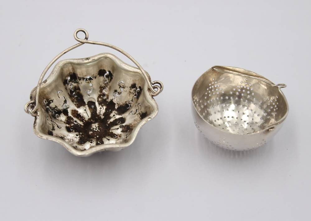 2x div. Teesiebe, Silber (gepr.), zus. ca. 34,4gr., ca. D-6cm D-4,5cm [1]