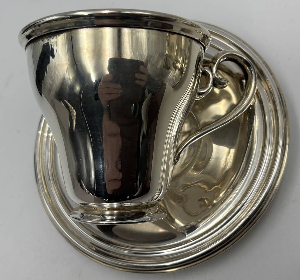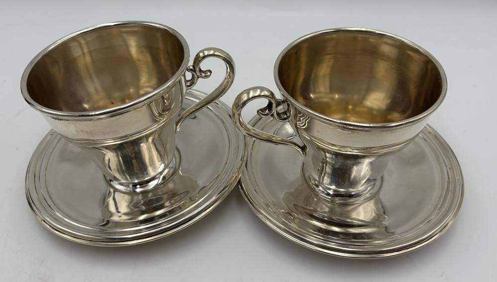 2x gr. Schokoladen-Tassen mit U.T., plated, guter Zustand, H-9 cm, D-9 cm [1]