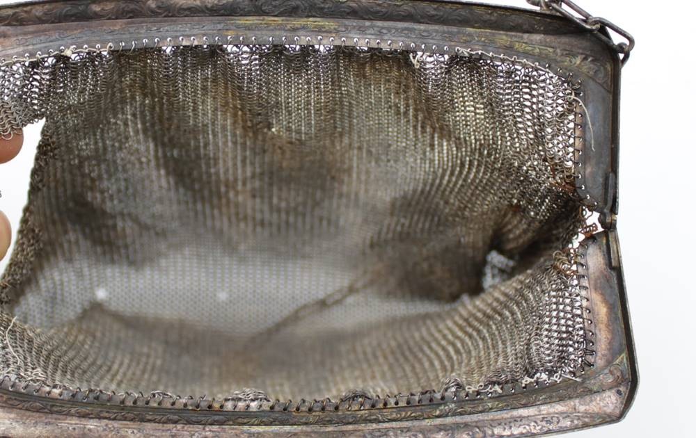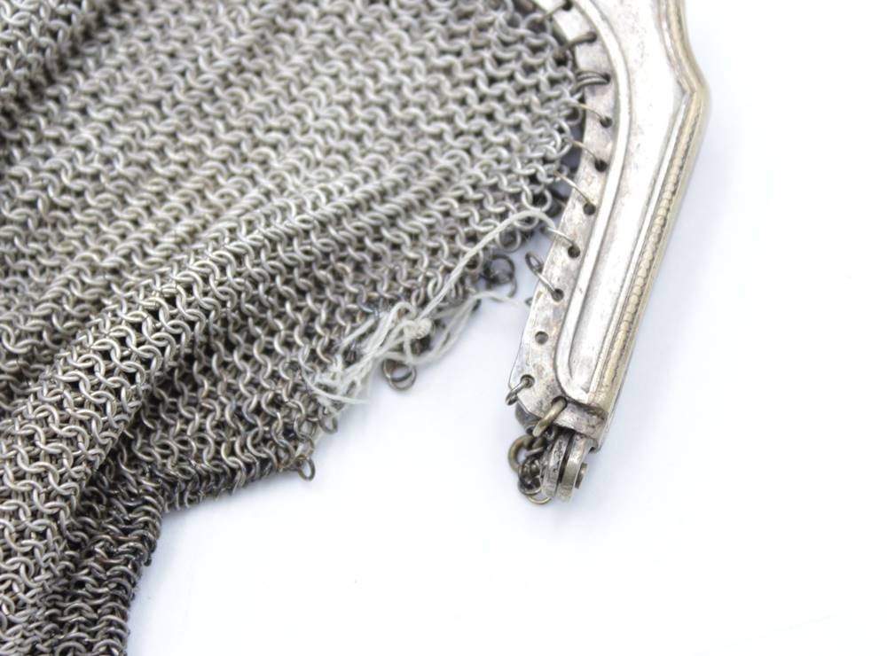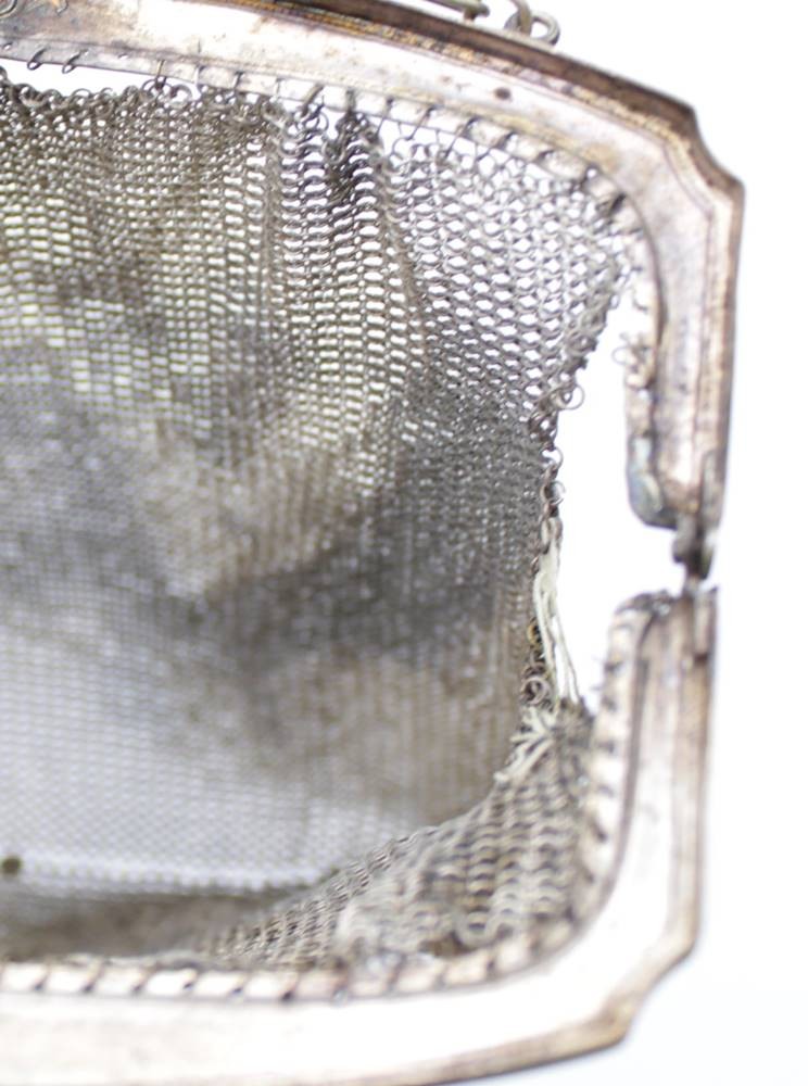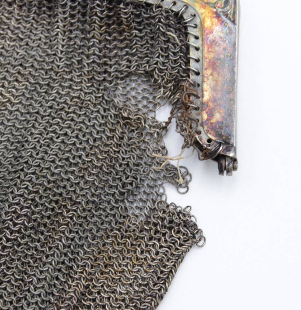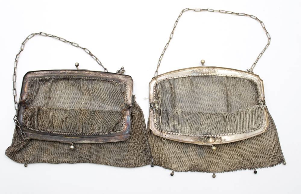 2x Kettentaschen, 19. Jhd., jeweils mit starken Beschädigungen, ca. 17 x 16cm. [1]