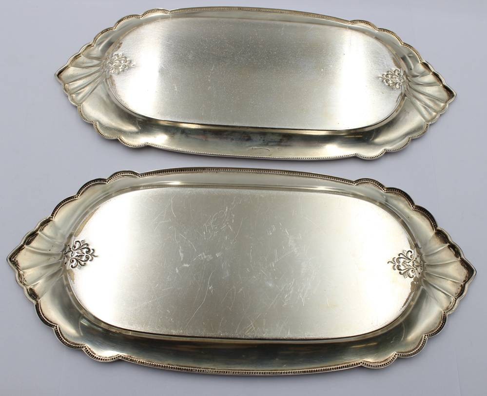 2x kl. Tabletts, WMF Straussenmarke, älter, 26 x 12cm