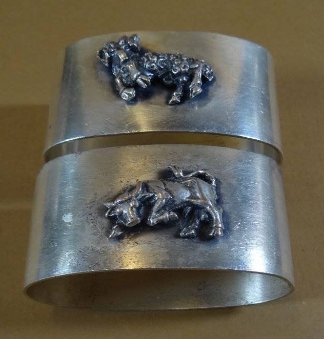 2x massive versilberte Serviettenringe "BSF", Tierdarstellungen [1]