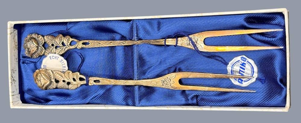 2x Wurstgabeln, Antiko Silber-800-,in OVP, zus. 31 gr. [1]