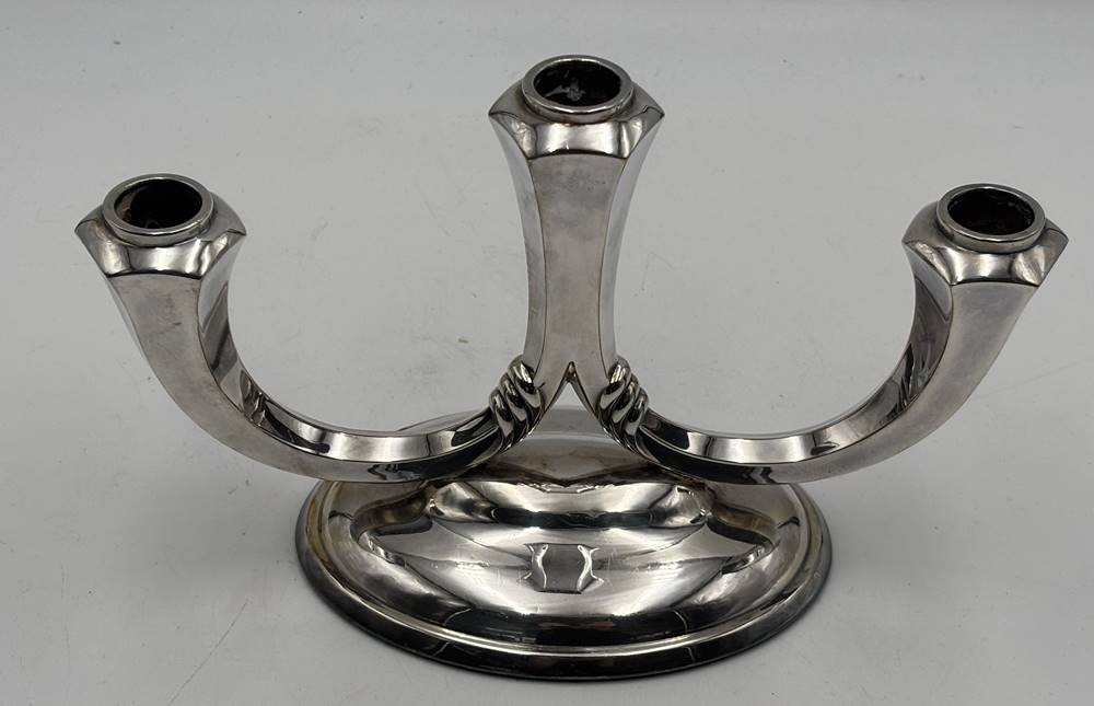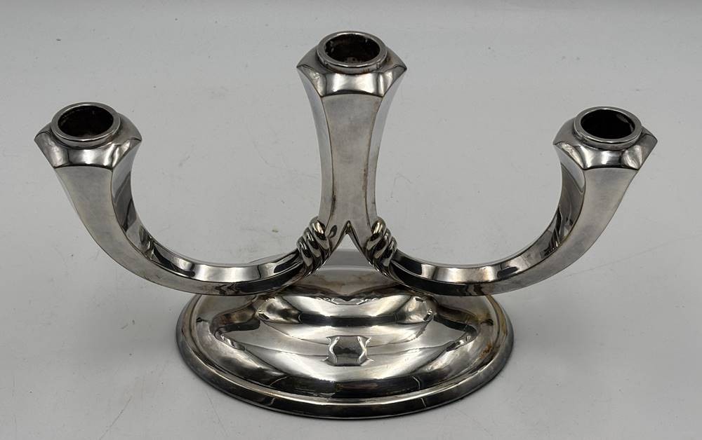 3 flammiger Kerzenhalter, plated, guter Zustand, H-14 cm, B-20 cm [1]