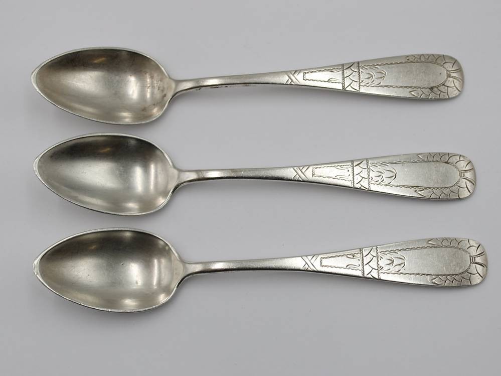 3x 800er Silber-Kaffeelöffel, ziseliert, 86,8gr., L-15cm [1]