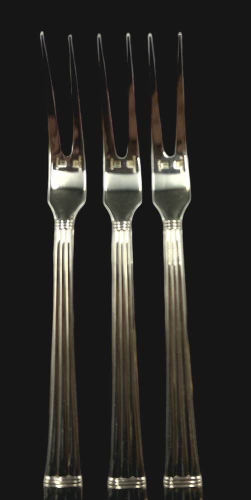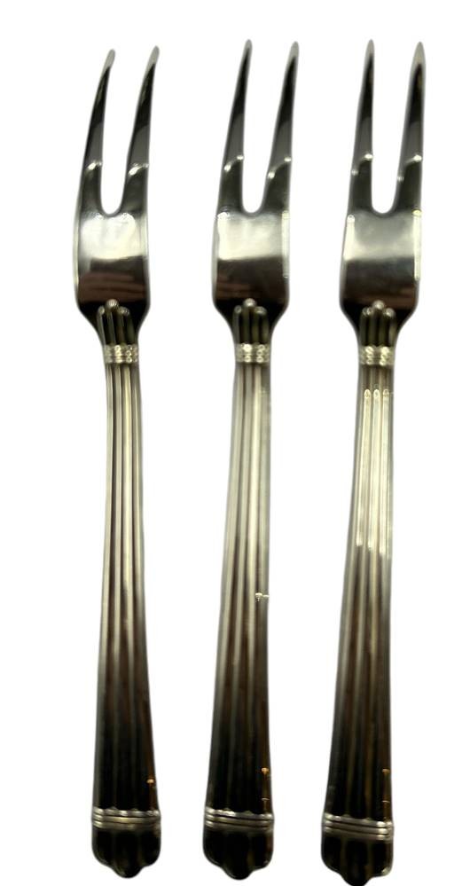 3x Aufschnitt-Gabeln "Christofle-Paris" Serie Aria, versilbert, neuwerig, L-17,5 cm [1]