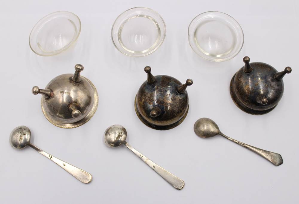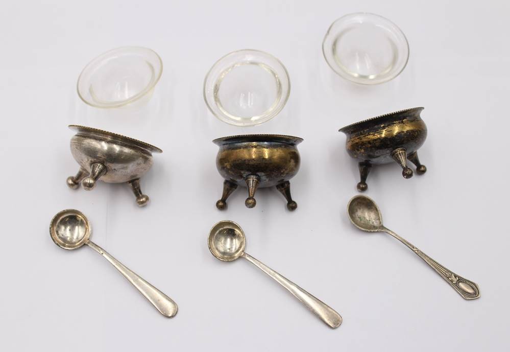 3x div. versilberte Salieren mit Löffel und Einsätzen, ca. H-3,5cm D-4cm [1]