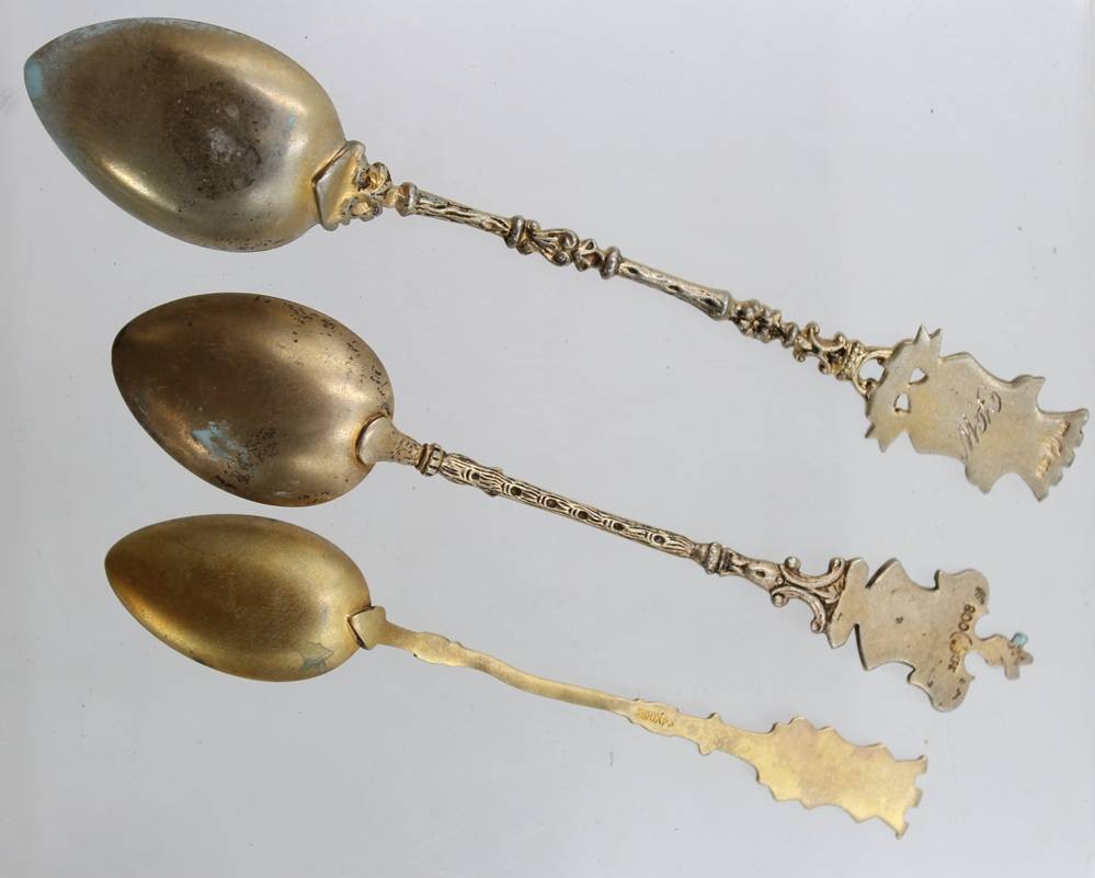 3x Silber-800- Wappenlöffel, emailliert, zusammen 28 gr. [1]
