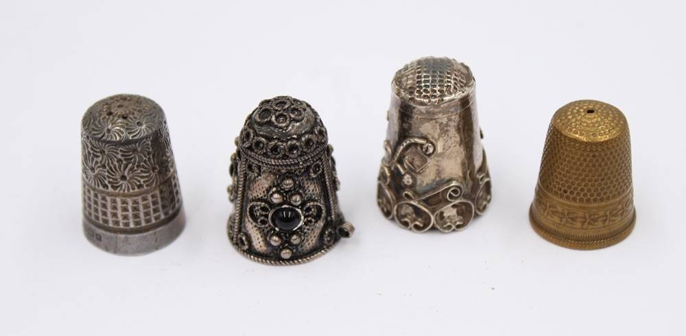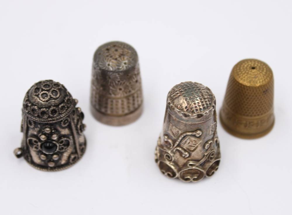 4 Fingerhüte, 1x Messing, 3x Silber (14,9gr), ca. H-2,5cm [1]
