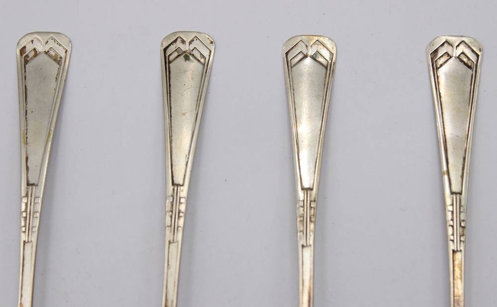 4x Art-Déco Kaffeelöffel, 800er Silber, 49,1gr., Gebrauchsspuren (Druckstellen), ca. L-13,8cm [1]