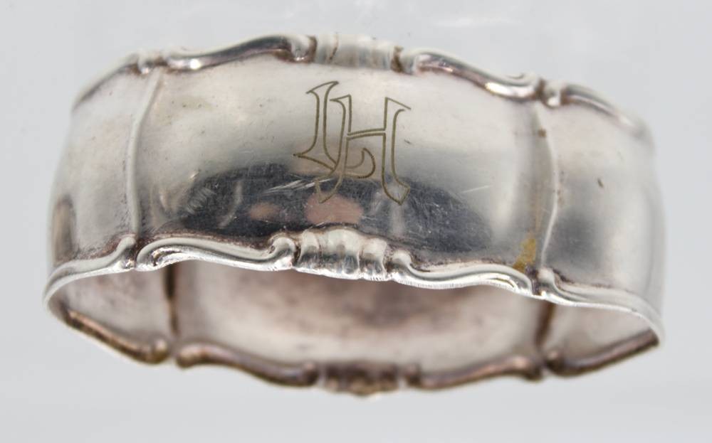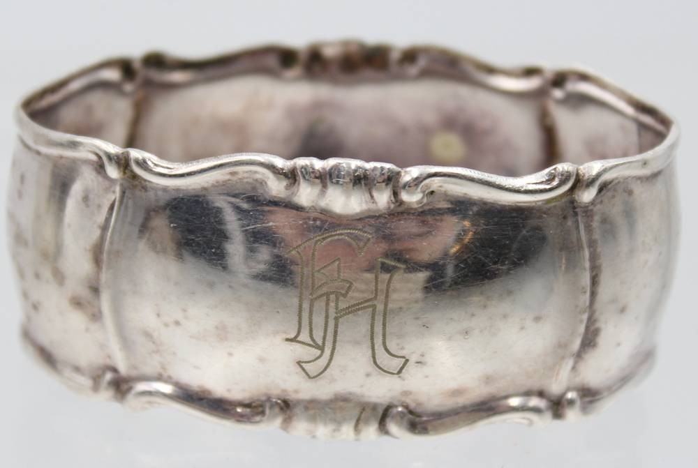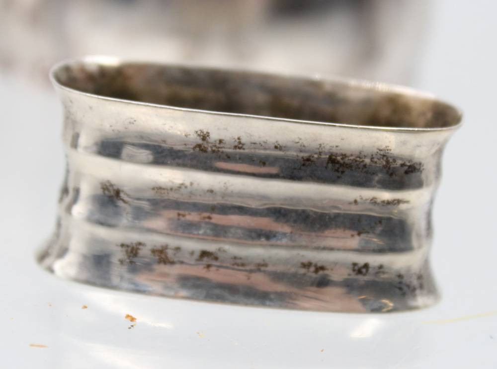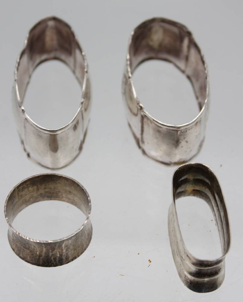 4x Serviettenringe, 2x Alpacca und 2x Silber (17,6gr.), 3x mit Gravuren, Altersspuren, Größte ca. 2,8cm L-6cm [1]