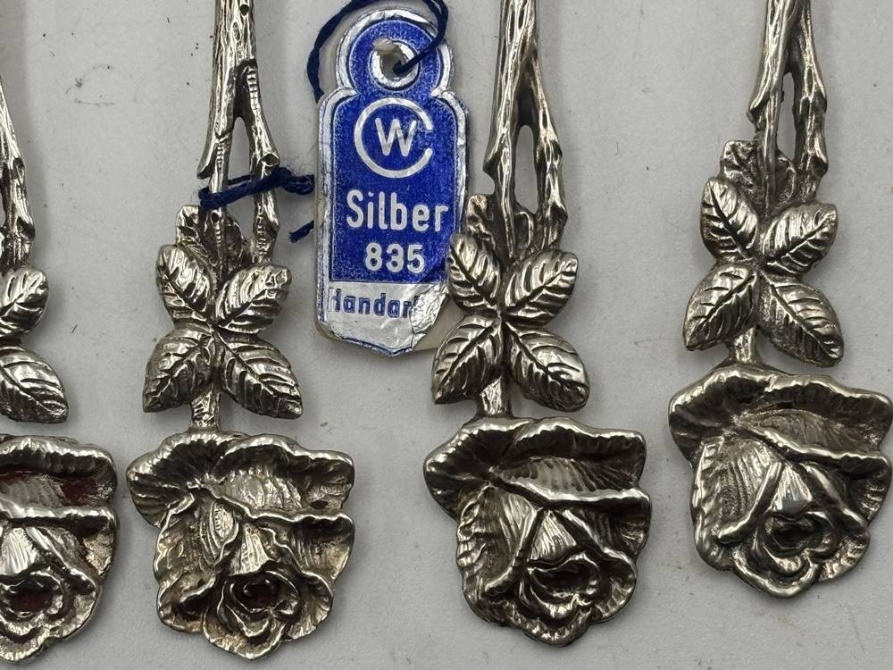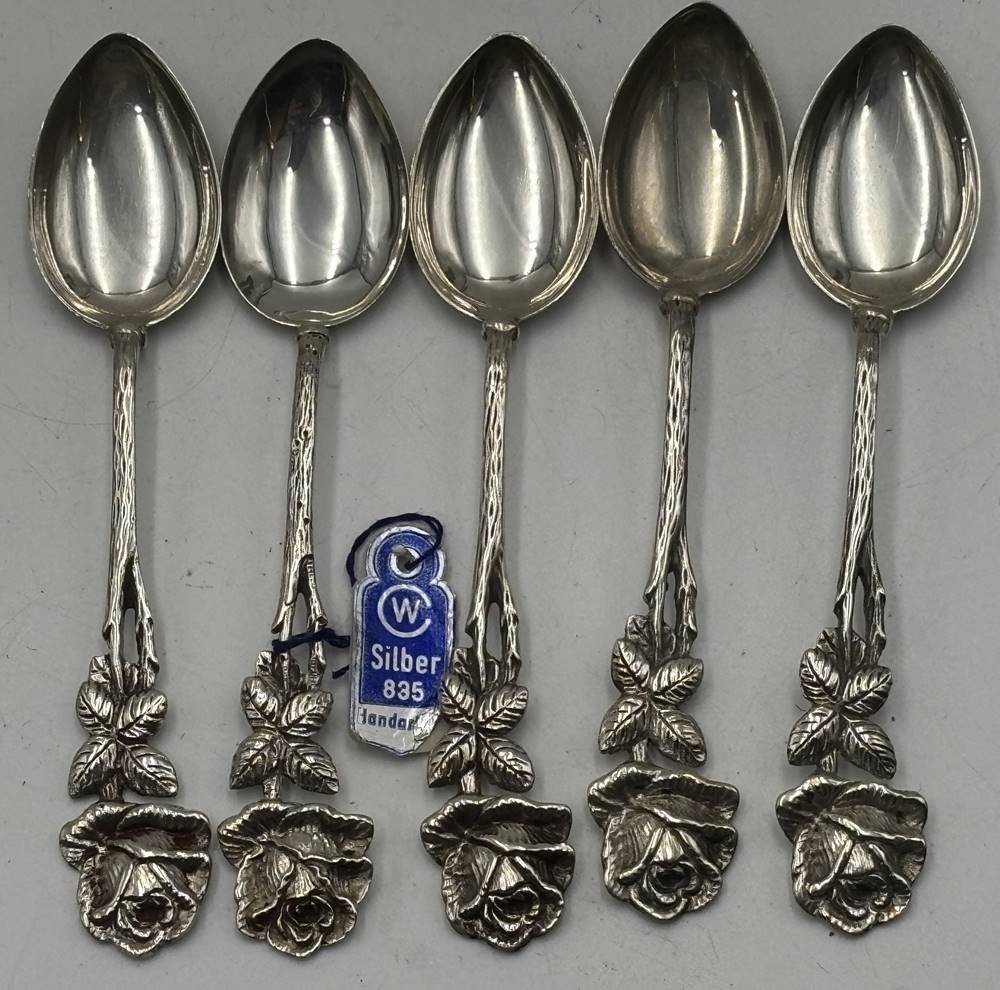 5x Silber-835- Moccalöffel, ca. 10 cm, 52 gr. Rosenmuster [1]