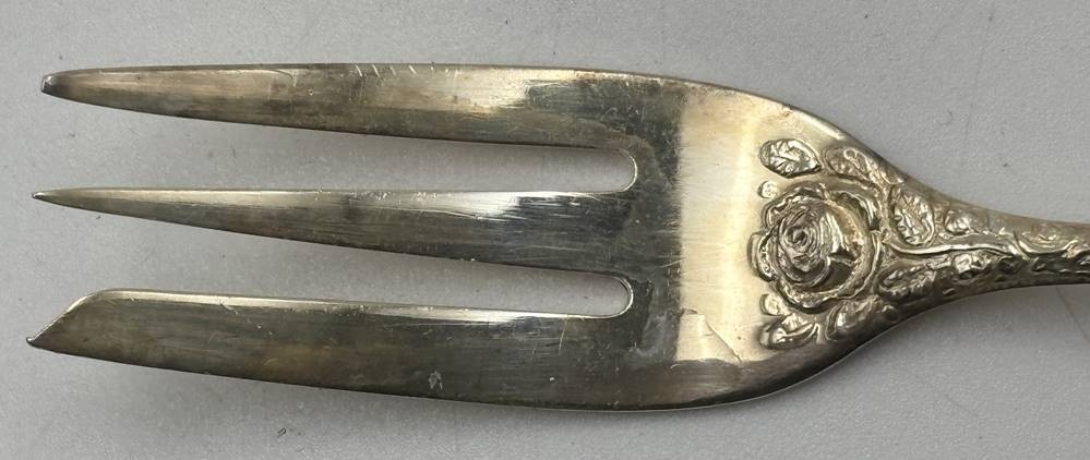 6 Kaffeelöffel, 5x Kuchengabeln, Silber-800-, , L-12 und 14 cm, zus. ca. 210 gr., Hildesheimer Rose [1]