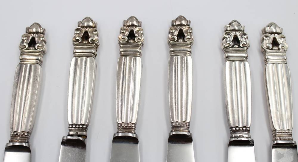 6x Dessertmesser, Georg Jensen, Acorn, Sterling-Griffe, ca. L-16,8cm [1]