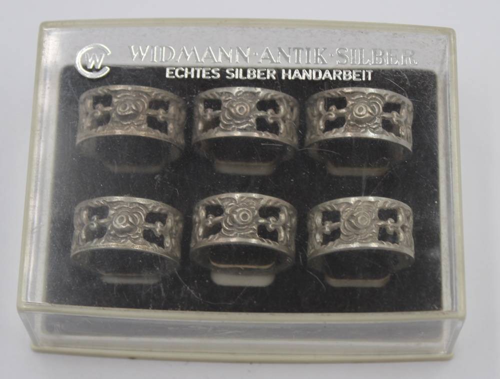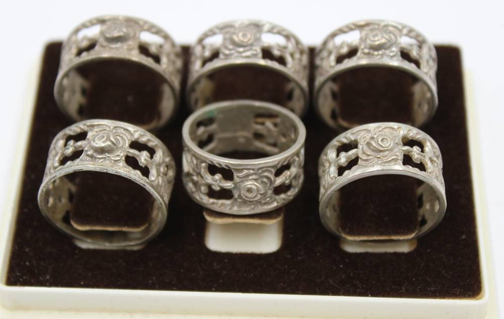 6x kl. Serviettenringe, Rosenmuster, 835er Silber, je D-2cm, 24gr. [1]