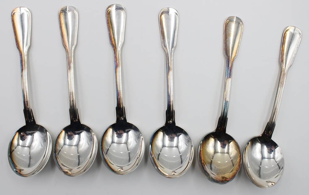 6x Kompottlöffel sowie Tortenheber, WMF, Augsburger Faden, 90er Auflage, ca. L-23,8cm [1]