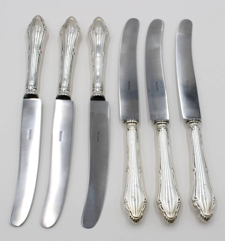 6x Messer mit 800er Silbergriffen, Ziermonogramm "JK", je ca. L-26cm