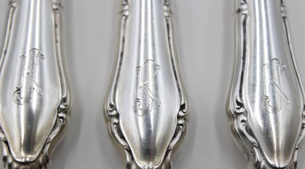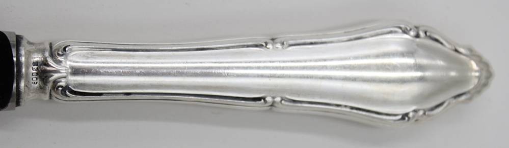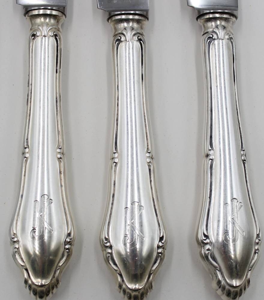 6x Messer mit 800er Silbergriffen, Ziermonogramm "JK", je ca. L-26cm [1]