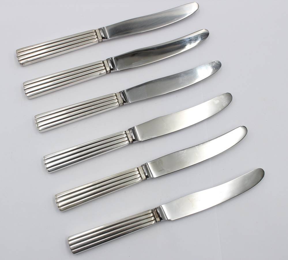 6x Messer mit Silbergriffen, Georg Jensen, Bernadotte, ca. L-17cm [1]