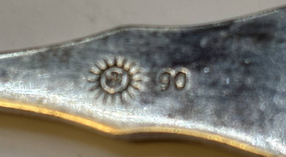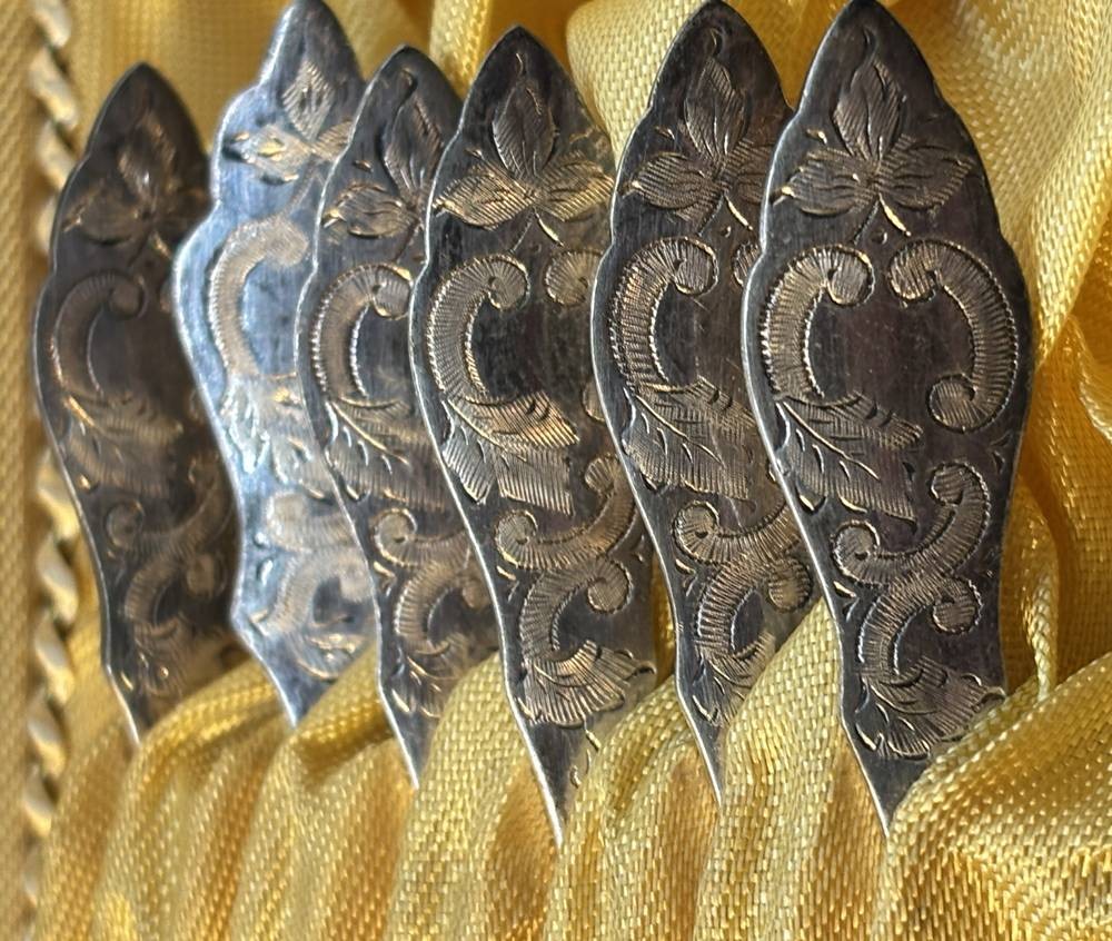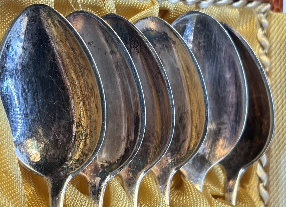 6x Moccalöffel in Kasten, Friesenmuster, versilbert, L-11 cm [1]