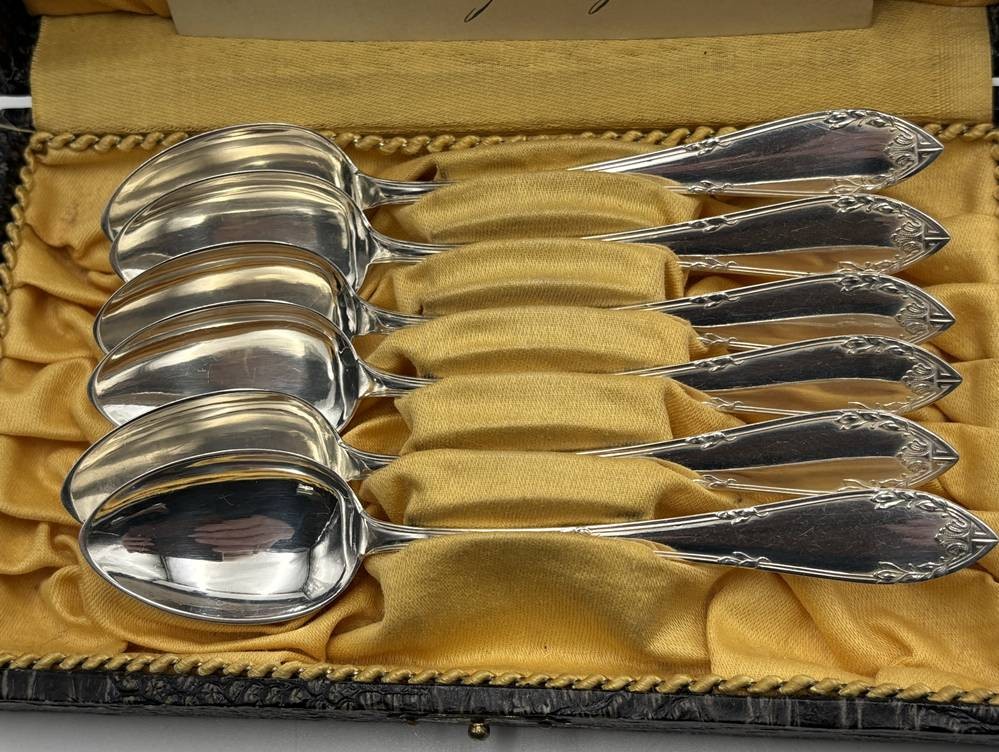 6x Silber-800- Kaffeelöffel in Etui, L-13 cm, 61 gr [1]