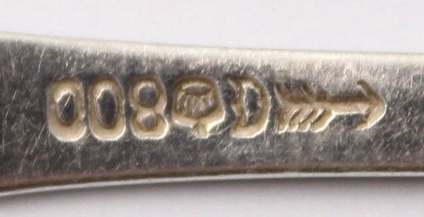 6x Teelöffel, 800er Silber, Friesenmuster, zus. 85,5gr., 1x verso Punktgravur, L-12,5cm [1]