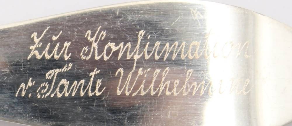 800er Silber-Esslöffel, ver Widmung "Zur Konfimation...", 49,1gr., L-22cm [1]