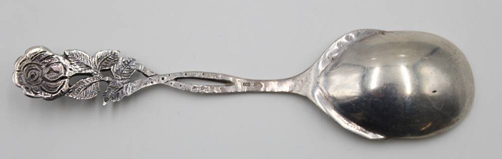 800er Silber-Sahnelöffel, Rosenmuster, L-14,5cm, 26,8gr. [1]