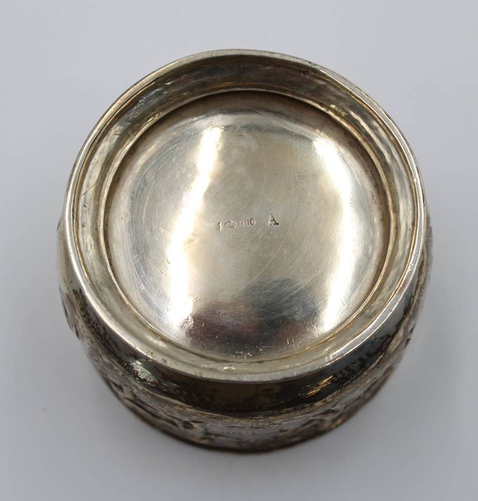 800er Zuckerschale, umlaufend Reliefdekor, Kinderreigen , 93,4gr., ca. H-5,3cm D-7,5cm [1]