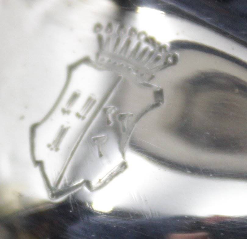 835er Silber-Leuchter, gefüllter Stand, Wappengravur, H-6,3cm. [1]