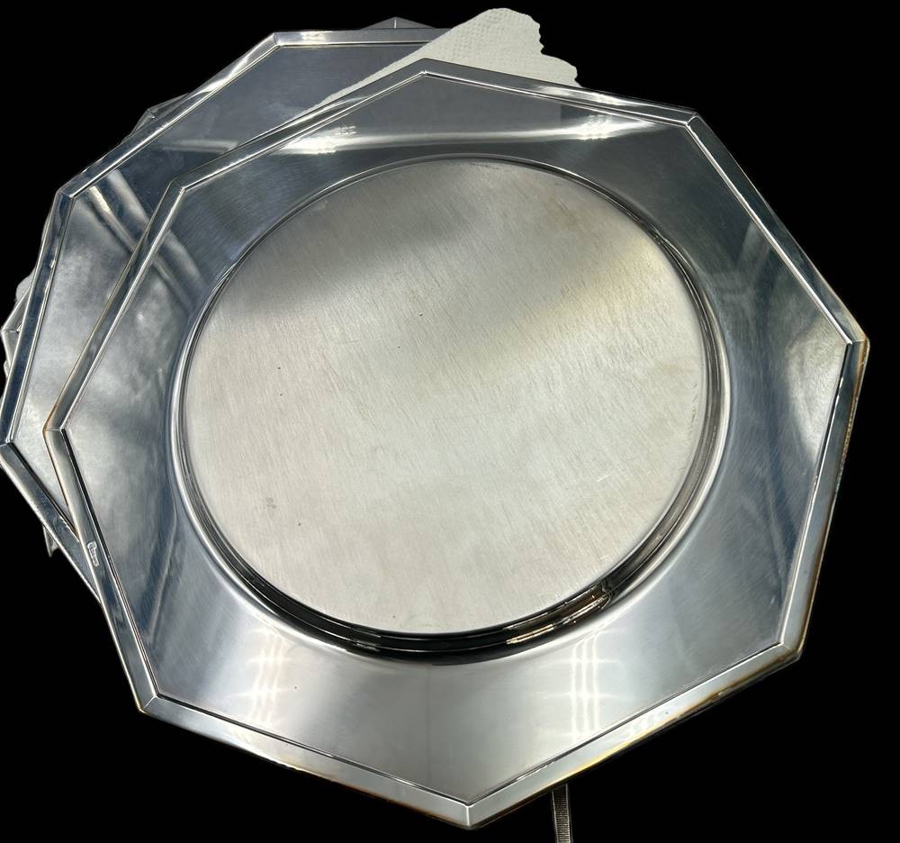 8x grosse versilberte Platzteller, sehr guter Zustand, "St. James" gemarkt, D-33 cm [1]