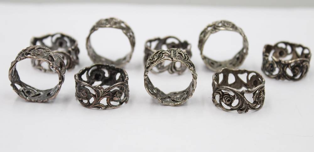 9x kl. Serviettenringe, 925er Silber, Rosenmuster, 28,1gr., D-2cm [1]