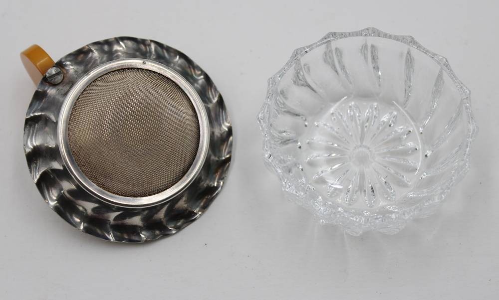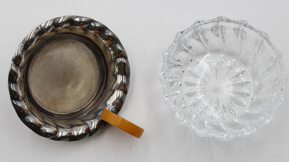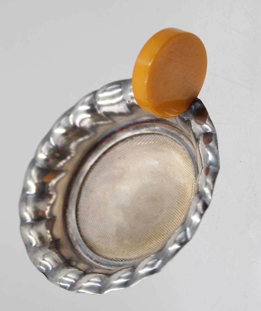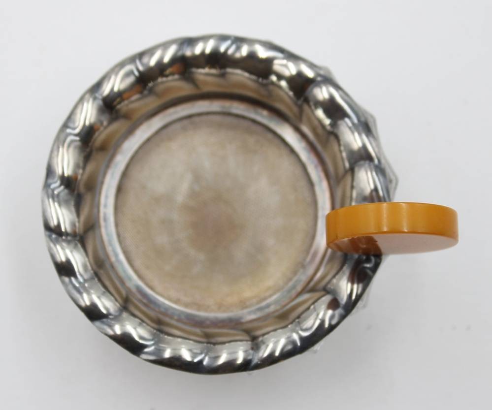 Art-Déco Teesieb mit Glasschale, Bakelit-Griff, ca. D-7cm [1]